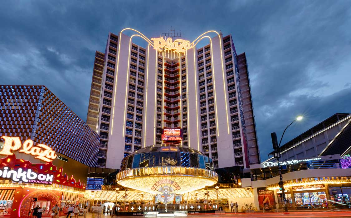 The Plaza Hotel & Casino, located at the historic site of Las Vegas's first railroad depot, is a landmark 4-star destination anchoring the Fremont Street Experience in Downtown Las Vegas.