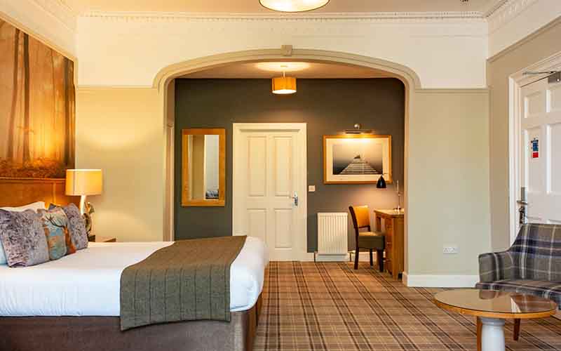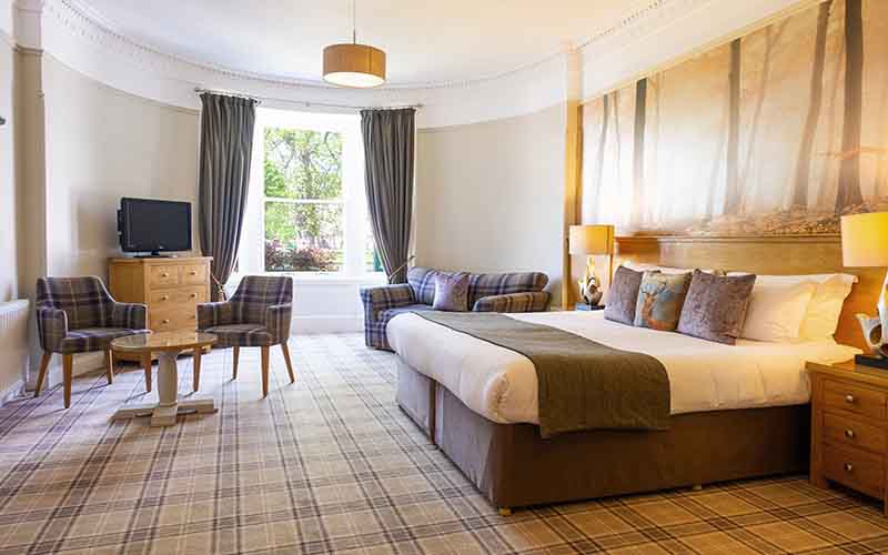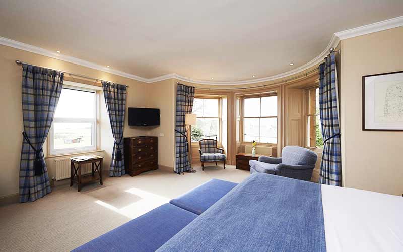 Many of the 22 en-suite guest rooms overlook both the golf course and Dornoch Firth beyond. All rooms include essential comforts like a flat-screen TV with Freeview channels, direct-dial telephone, free Wi-Fi, a hospitality tray for tea and coffee, and complimentary toiletries.