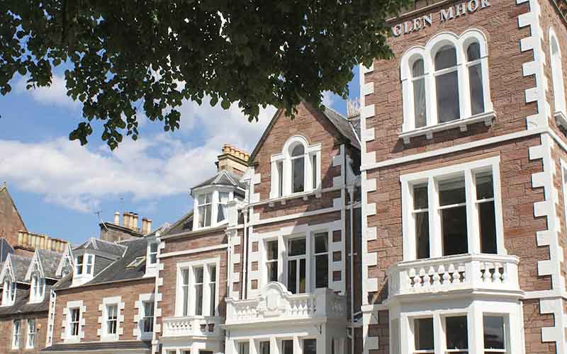 The Glen Mhor Hotel is a distinctive riverside property that blends historic charm with contemporary amenities.