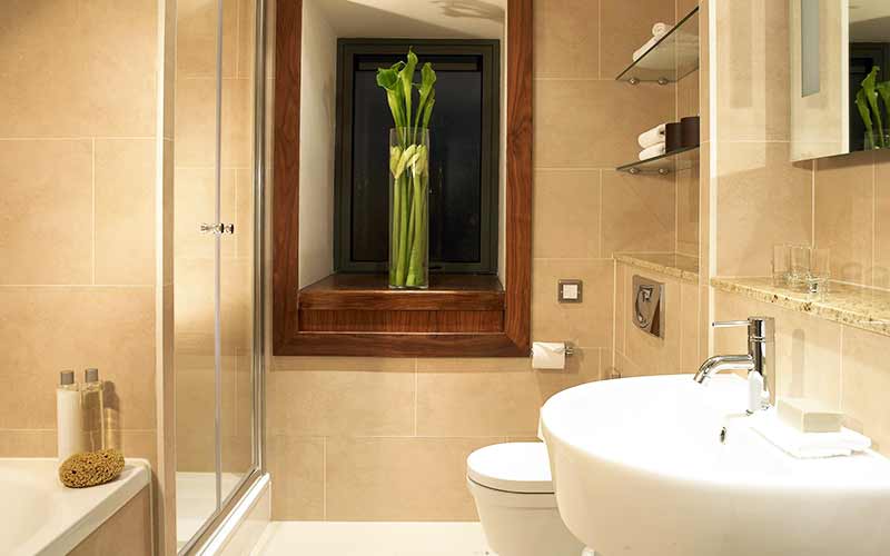 The hotel has almost 200 rooms, all of which are decorated in traditional furnishings with navy carpeted floors, antique-style furnishings and brass lamps. Rooms are spacious and clean, with desks and seating areas, while amenities include safes, free Wi-Fi, and flat-screen TVs. Bathrooms are clean and topped with Italian marble and provide high-end Comfort Zone toiletries, robes and slippers.