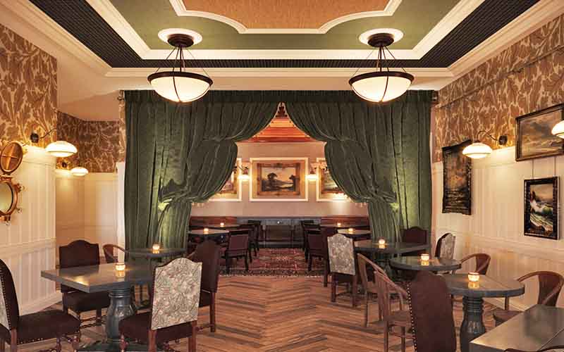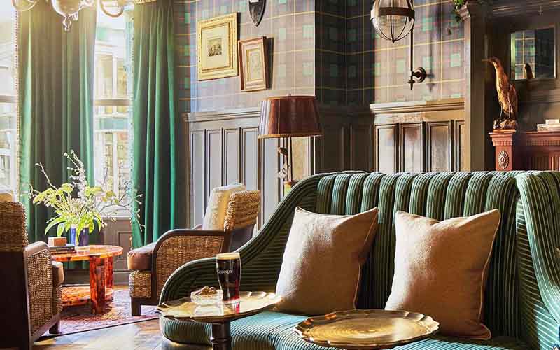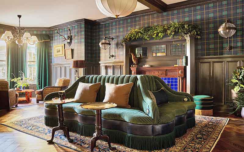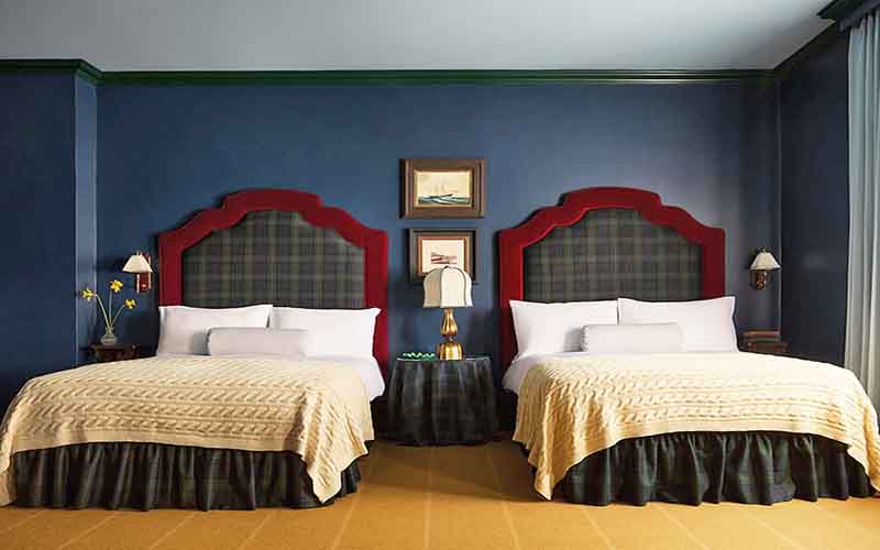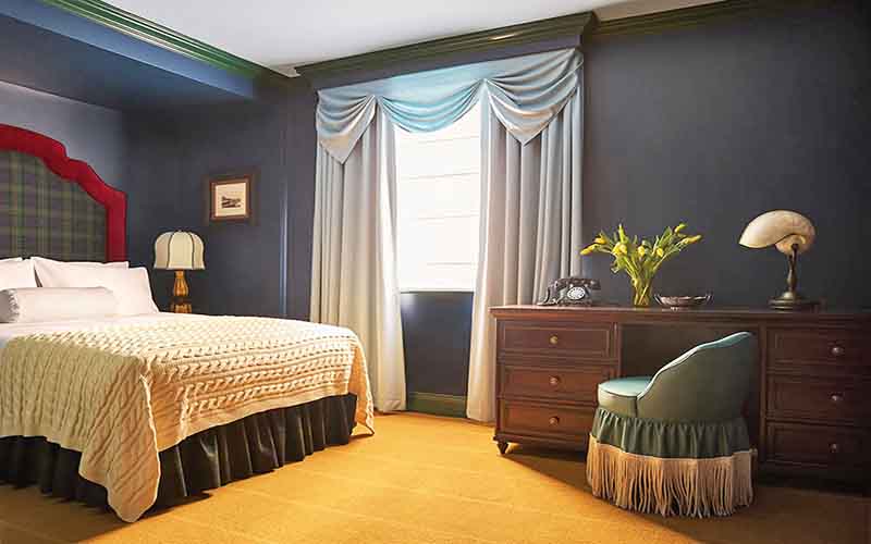 The 34 rooms are unfussy yet distinctly elegant, with grand tartan headboards, traditional cable knit blankets thrown over heavyweight duvets, and deep green tiled bathrooms stacked with Floris soaps and creams, reminiscent of old school grooming ads. Think navy blue walls dotted with oil paintings of ships at sea, dark wood furniture, a plush couch as comfortable as the king-sized bed, and touches of hunter green and dark red at every corner.