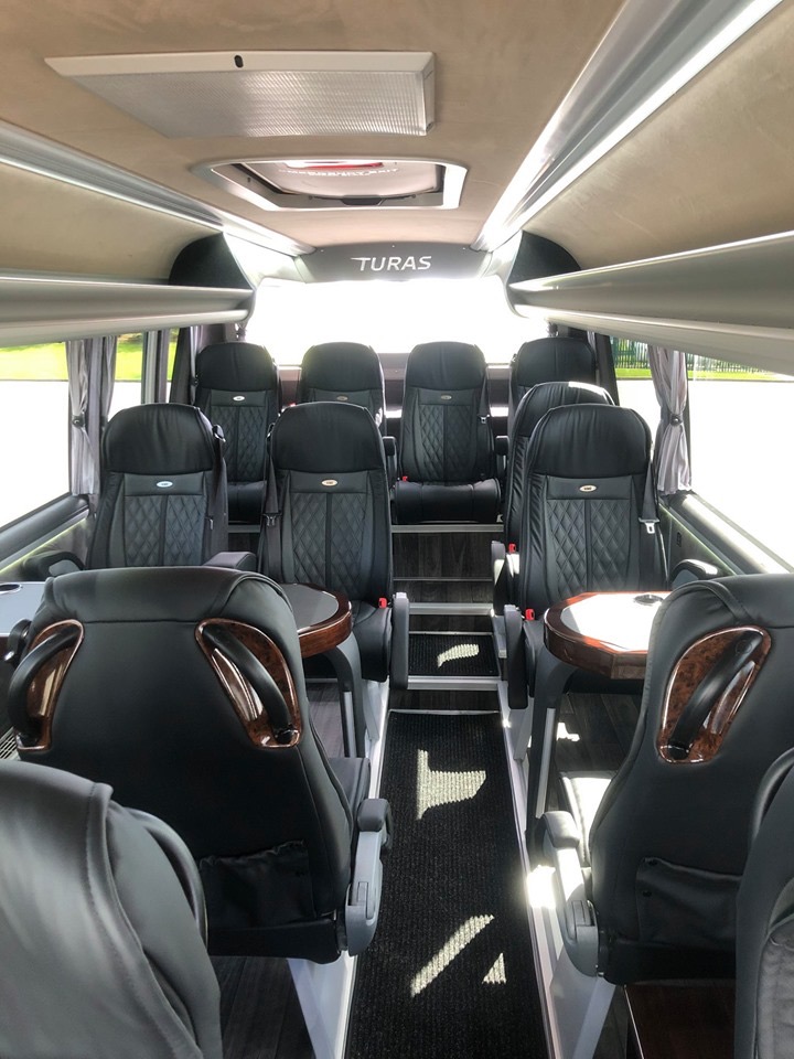 The Mercedes Sprinter Coach is a large van that comfortably handles 6-8 golfers, their luggage and golf clubs. The last row of seats folds down and gives you plenty of room for all of your luggage, while still providing 8 seats up front. It is larger than a standard van and handles and drives just like a normal minivan.