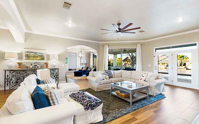 Relax in the luxury of these fully furnished three-bedroom condos. Each condo has a minimum of 4 individual beds with high thread count Egyptian sheets. Before or after golf you can sit and relax on your balcony while taking in the panoramic views of the Texas Hill Country and Lake LBJ.